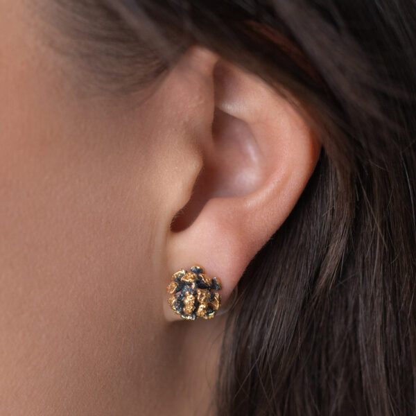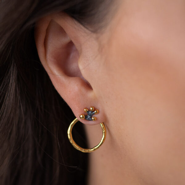 Auskarai juodos rinkelės su aukso taškučiais